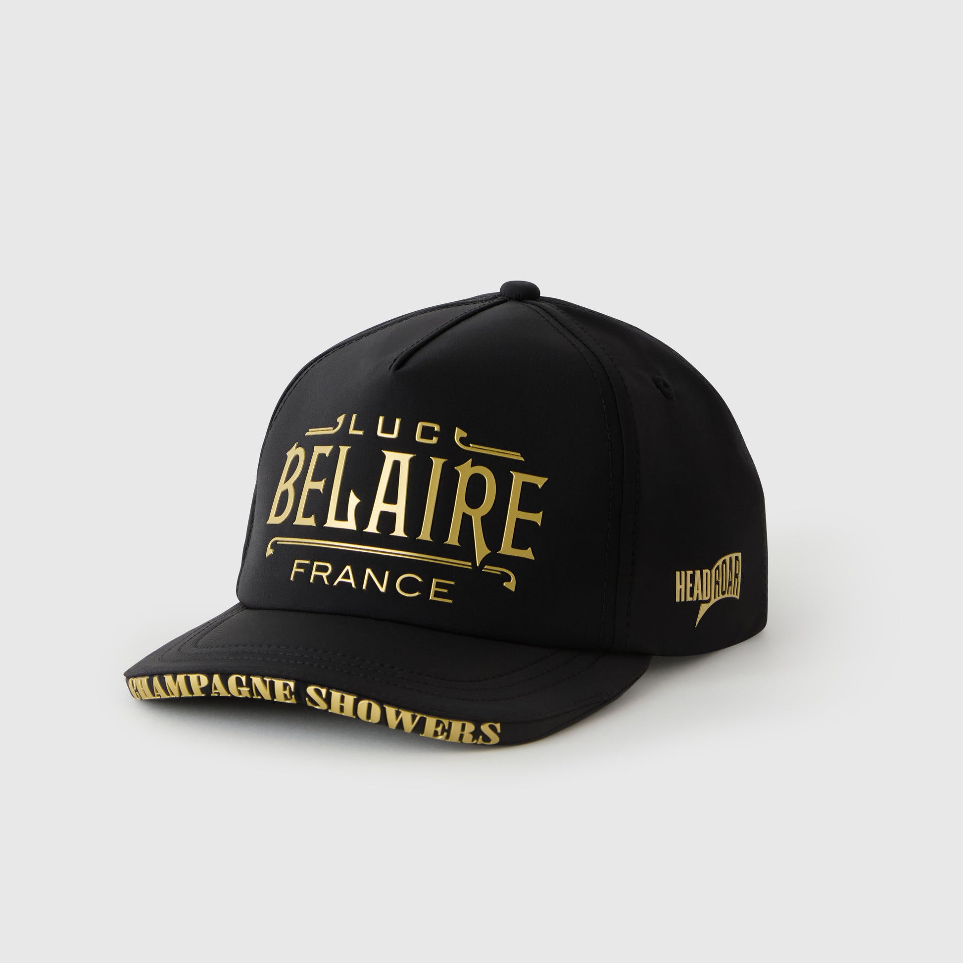 Artwork: Metallic gold “BELAIRE FRANCE” print on the front panel, with the Headroar logo on the side and “1 of 1” accent at the side.