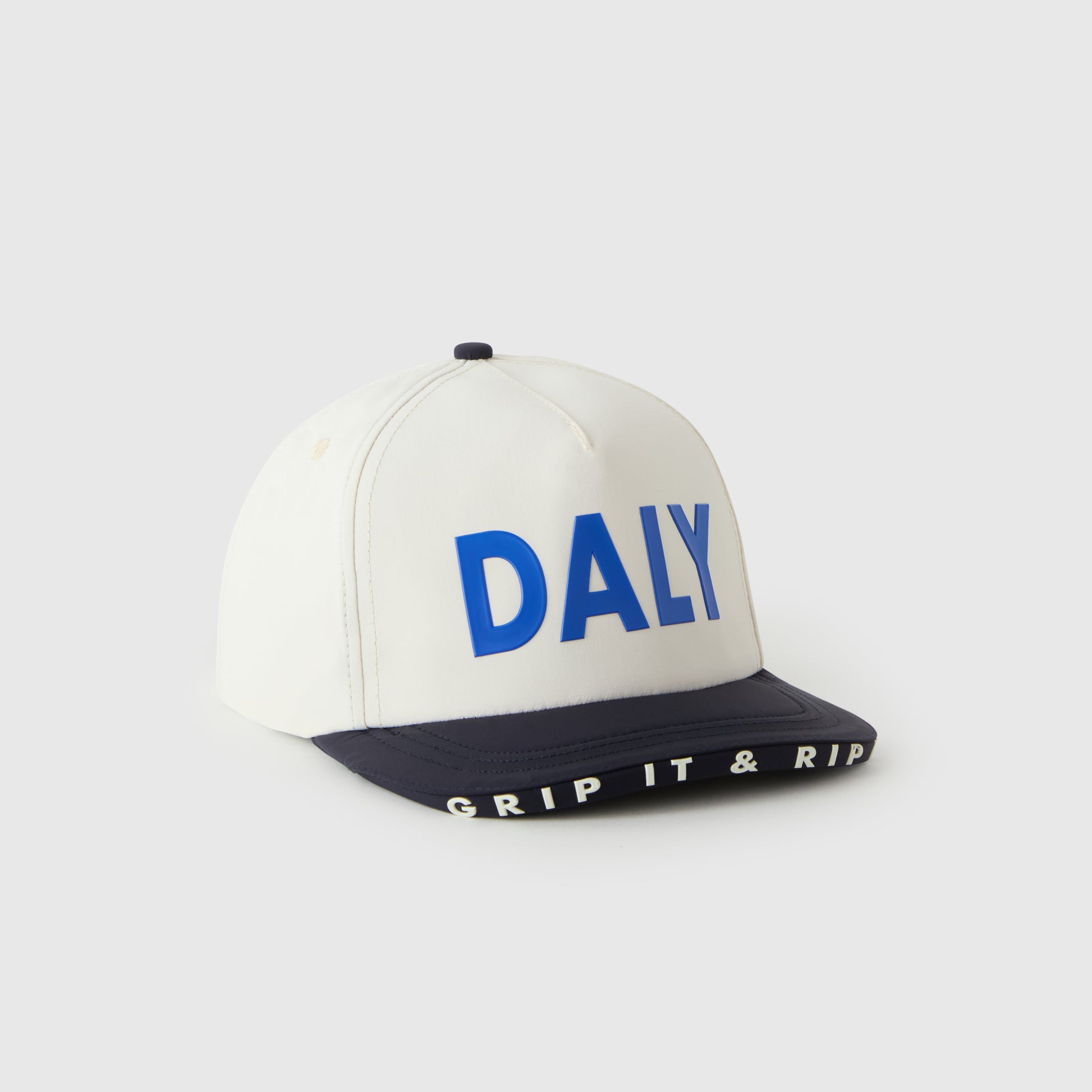 Channel bold energy every time you hit the course or the street. This crisp cream and navy snapback from Headroar features striking blue "DALY" lettering—a tribute to fearless swings and signature style.