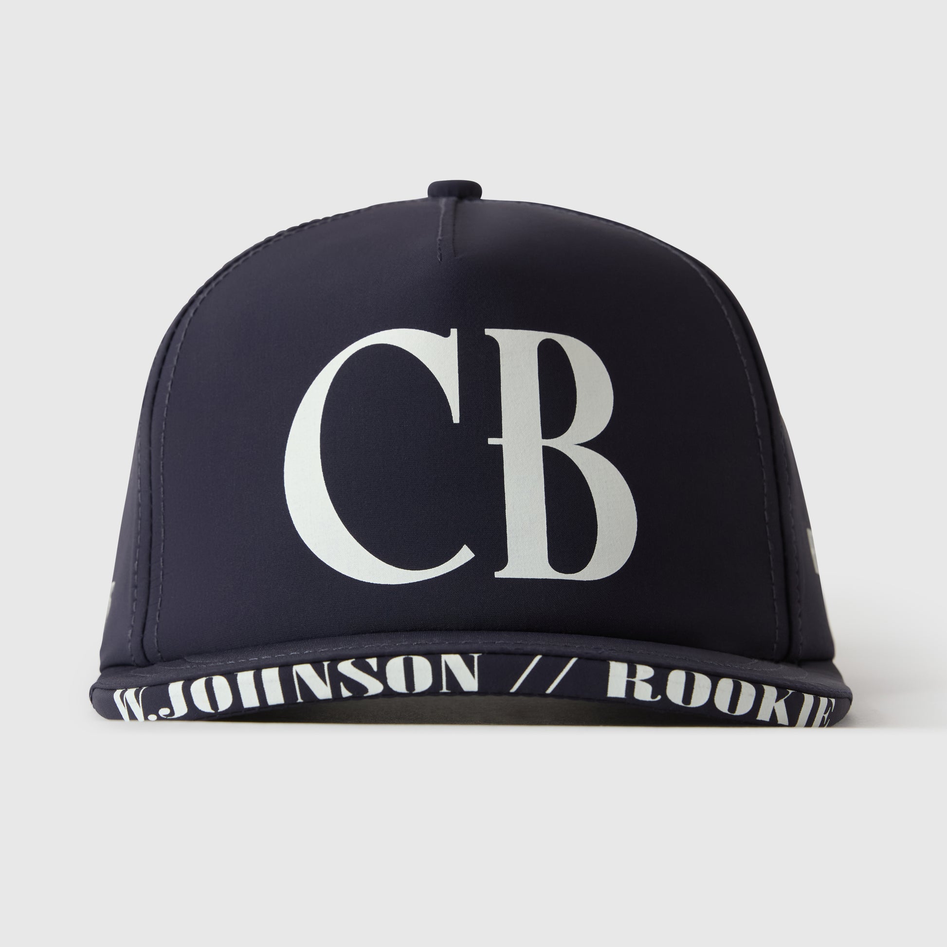 The Edge: Brim face stitched with “JOHNSON // ROOKIE”—a statement for day-one impact.