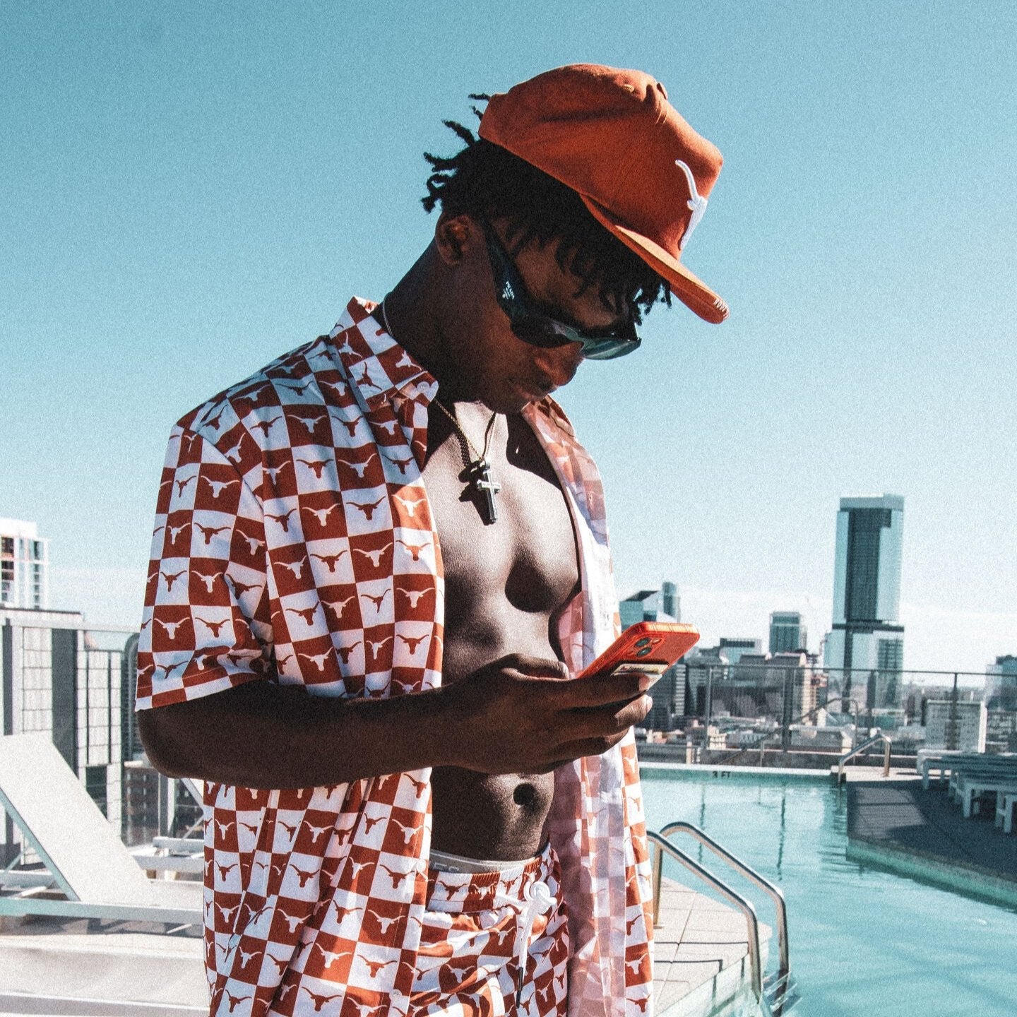 Dylan Disu, starting Forward for the Longhorns Basketball Team.